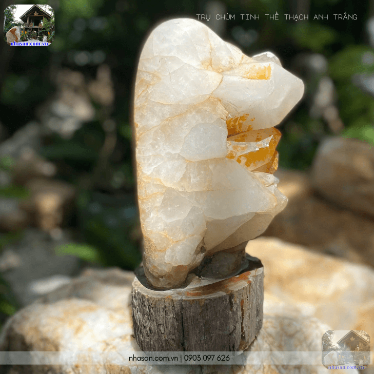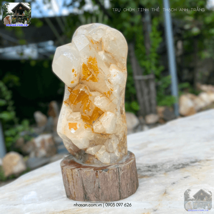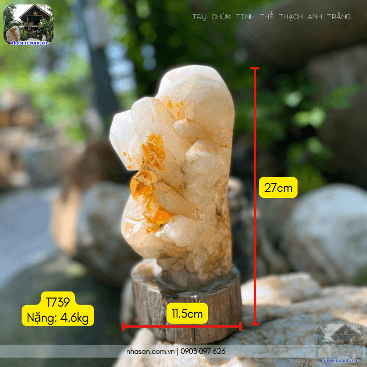 Liên hệ ngay để sở hữu trụ chùm tinh thể thạch anh trắng T739 độc bản - vật phẩm phong thủy giúp thanh lọc không gian, mang lại bình an và thịnh vượng cho ngôi nhà của bạn.