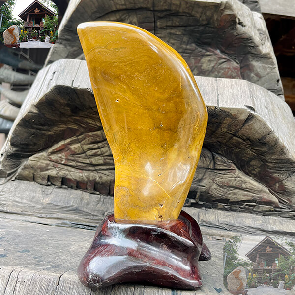 Trụ đá canxedon vàng đất có thể được sử dụng để trang trí trong nhà, văn phòng, hoặc làm quà tặng cho người thân, bạn bè.