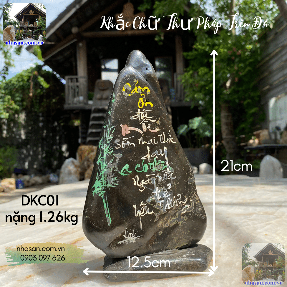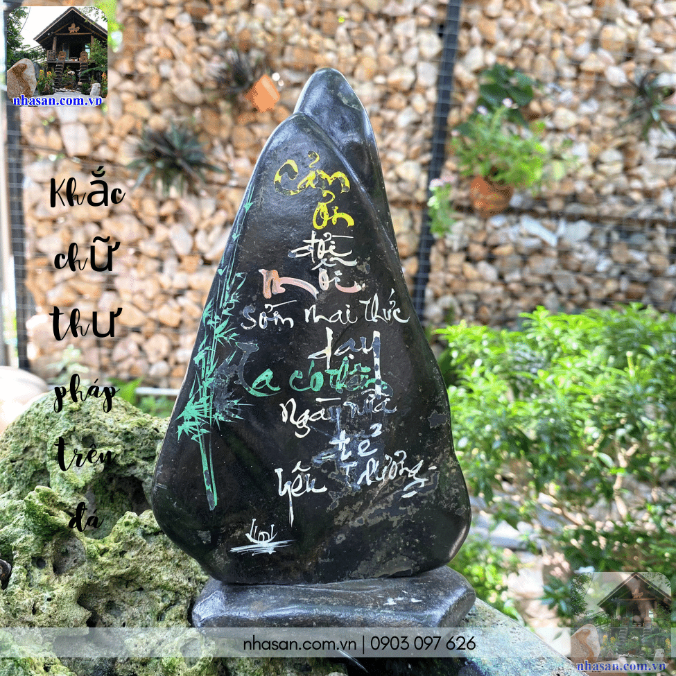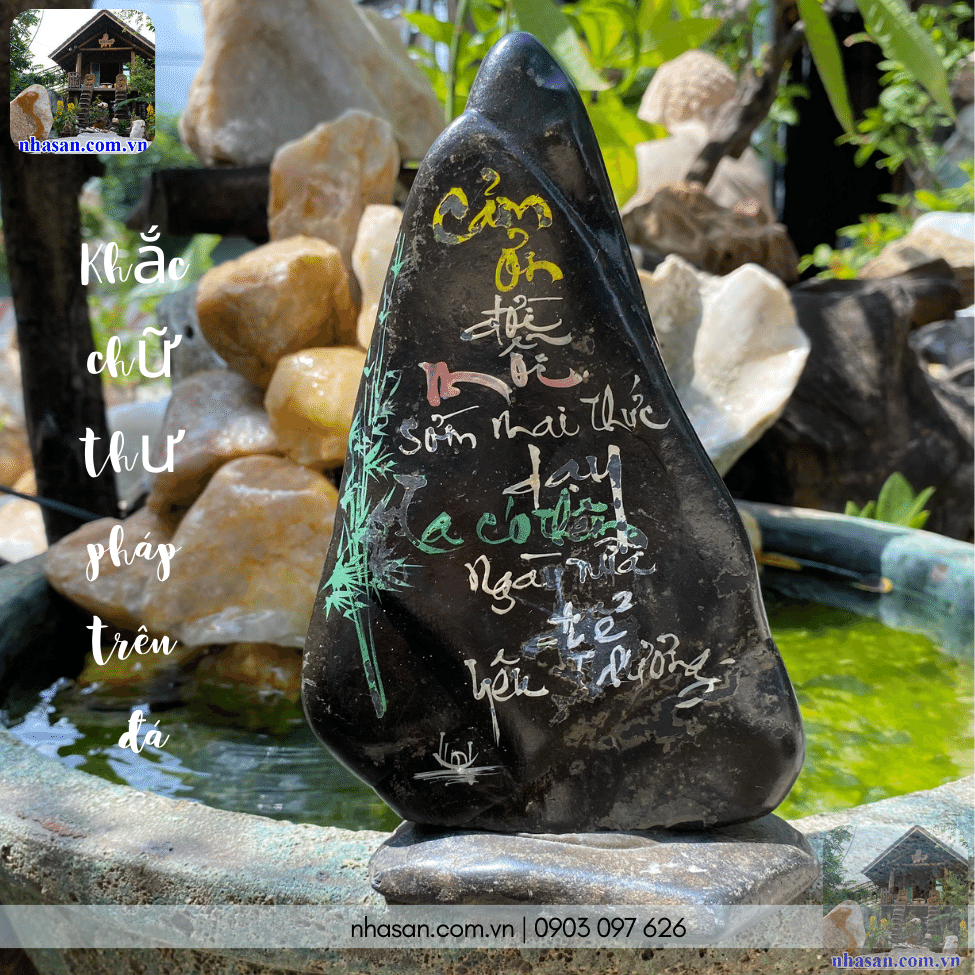 Khắc chữ thư pháp trên đá "Cảm ơn đời mỗi sớm mai thức dạy, ta có thêm ngày nữa để yêu thương"