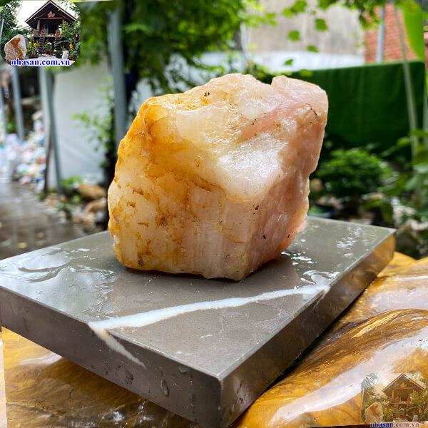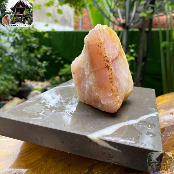 + Chất liệu: Đá thạch anh hồng thô tự nhiên