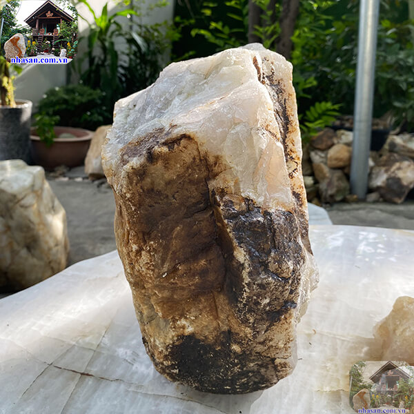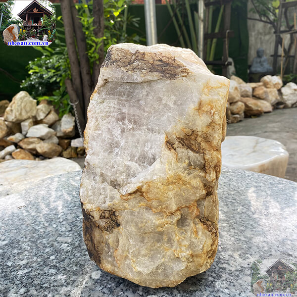 Đá thô thạch anh có độ cứng cao, khả năng chịu nhiệt tốt và không bị phai màu. Đá có nguồn năng lượng dương mạnh mẽ, có tác dụng cân bằng âm dương, hóa giải sát khí, mang lại may mắn và tài lộc cho gia chủ.