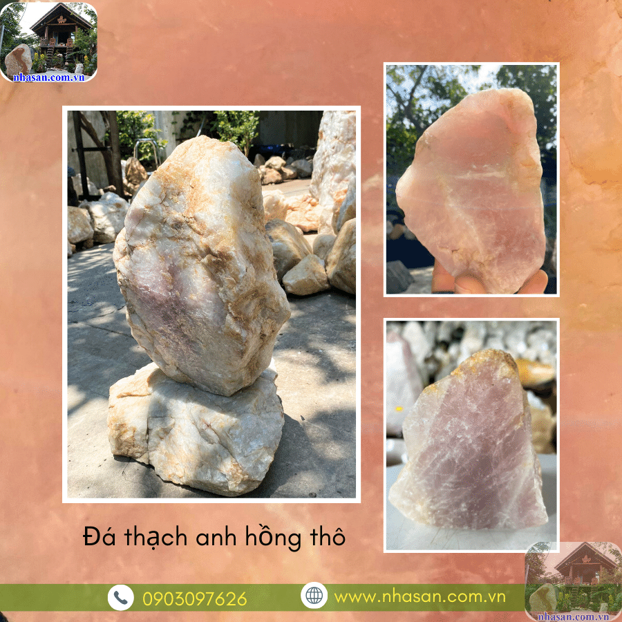 Thạch anh hồng thô khối là một trong những viên đá được mệnh danh là "viên đá tình yêu" tượng trưng cho tình yêu lãng mạn, hòa hợp và lòng nhân ái. Ngoài ra, chúng còn có tác dụng trấn trạch, khử sóng từ, thu hút tài lộc và vận may. Hiện tại, mức gia đá thạch anh hồng thô từ 100.000 đồng - 350.000 đồng/kg.
