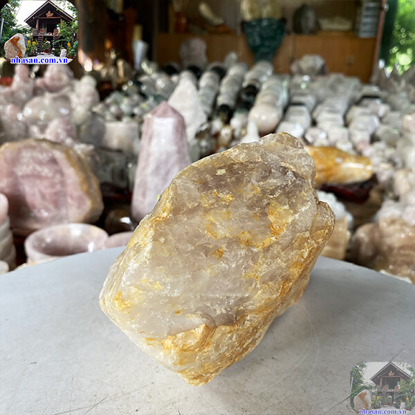 - Chất liệu: Đá thạch anh hồng thô tự nhiên