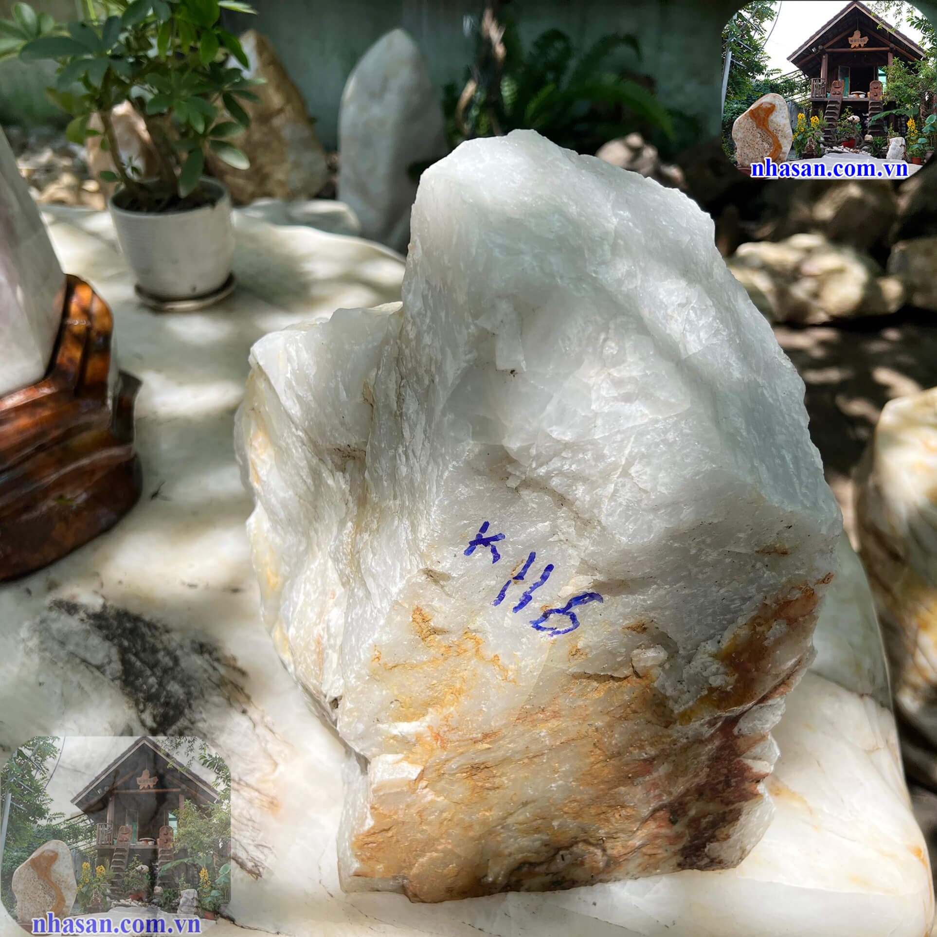 1. Trụ đá thạch anh trắng thô tự nhiên nguyên khối K116-1:
