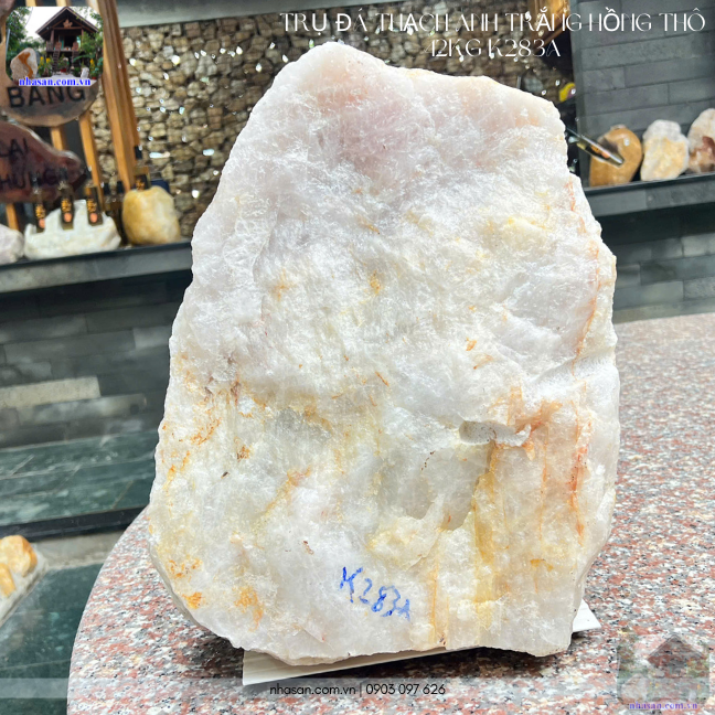 Trụ đá thạch anh trắng hồng thô 42kg K283A là một lựa chọn hoàn hảo để mang đến năng lượng thịnh vượng, tài lộc và may mắn cho gia chủ.