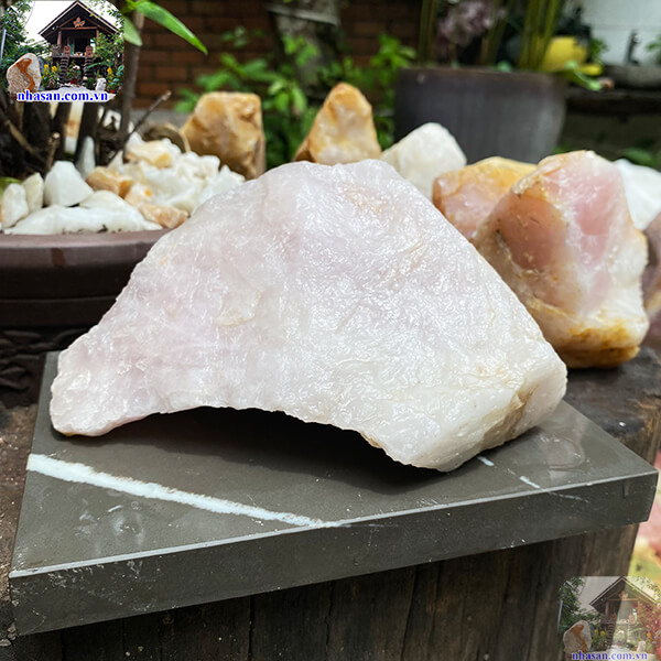 + Chất liệu: Đá thạch anh hồng thô tự nhiên