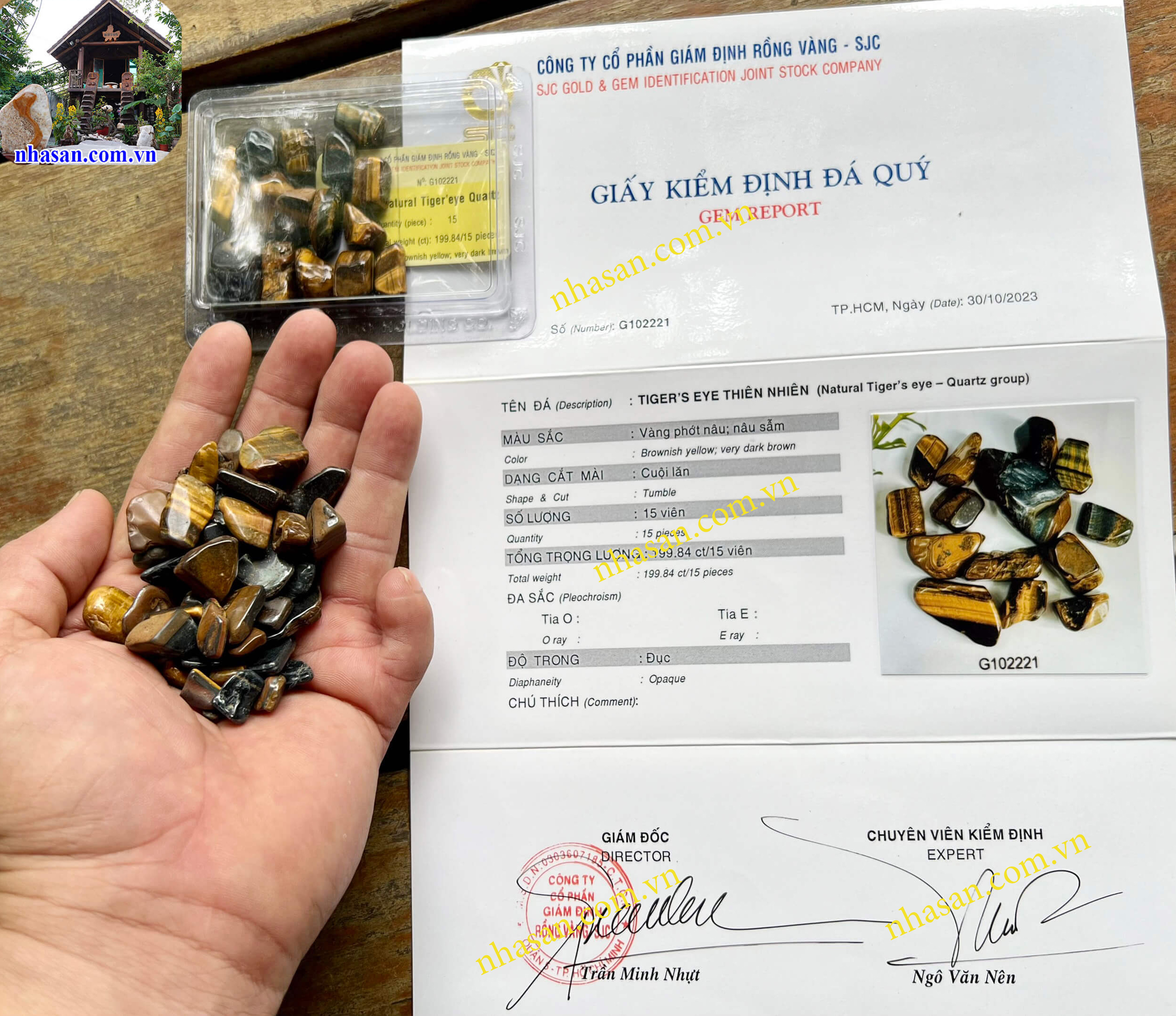 Giấy kiểm định đá mắt hổ vụn mài bóng thiên nhiên