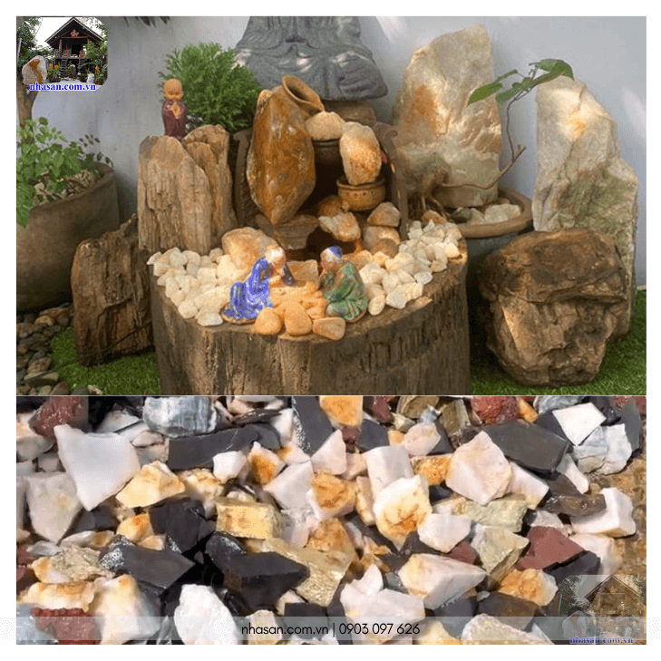 Sử dụng đá ngũ sắc thô rải nền nhà