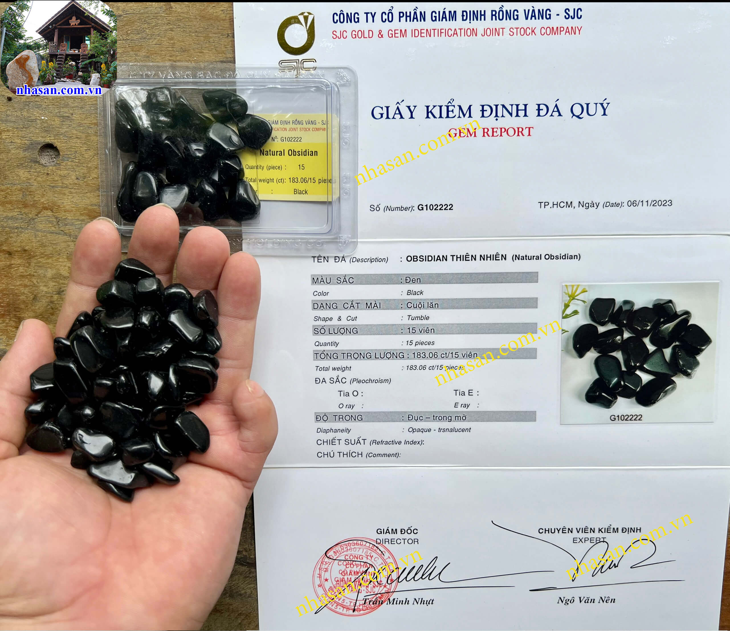 Giấy kiểm định đá bồ kết đen vụn bóng thiên nhiên