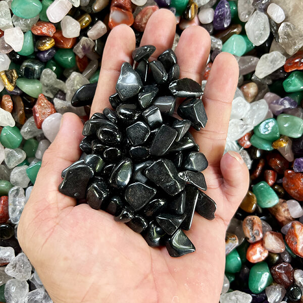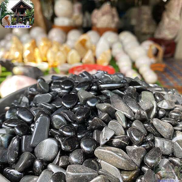 - Để phong thủy: Bạn có thể trộn đá bồ kết đen vụn đánh bóng với các loại đá thạch anh vụn đánh bóng khác gọi là đá ngũ sắc dùng để rải sàn, trang trí bể cá, tiểu cảnh, rải chậu cây, ...