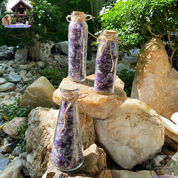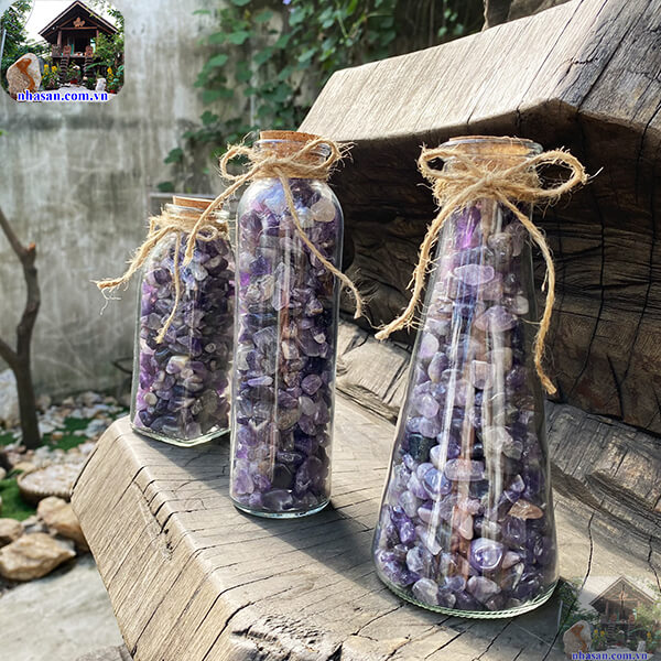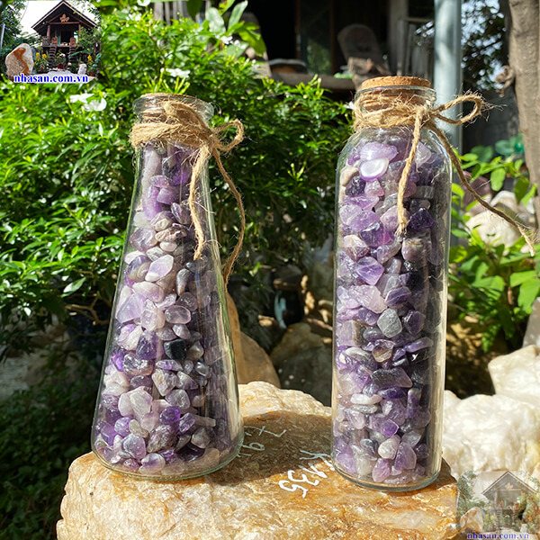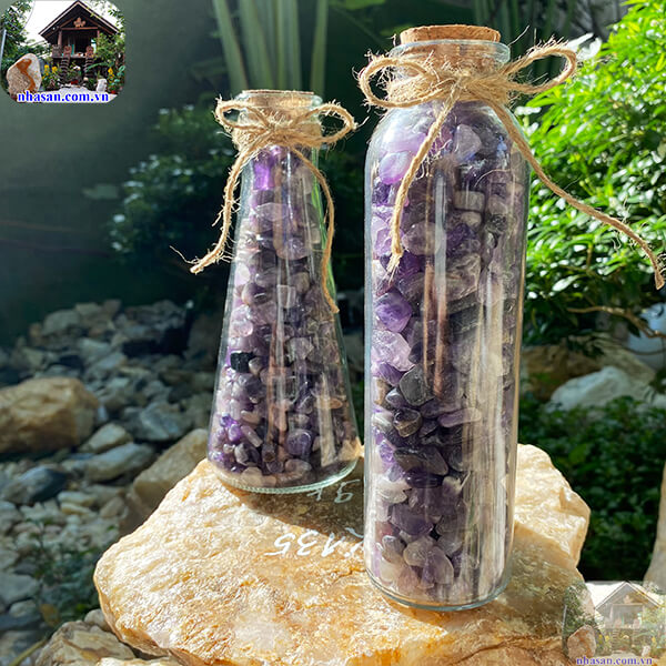 Lọ, chai đá năng lượng - vụn thạch anh tím mài bóng