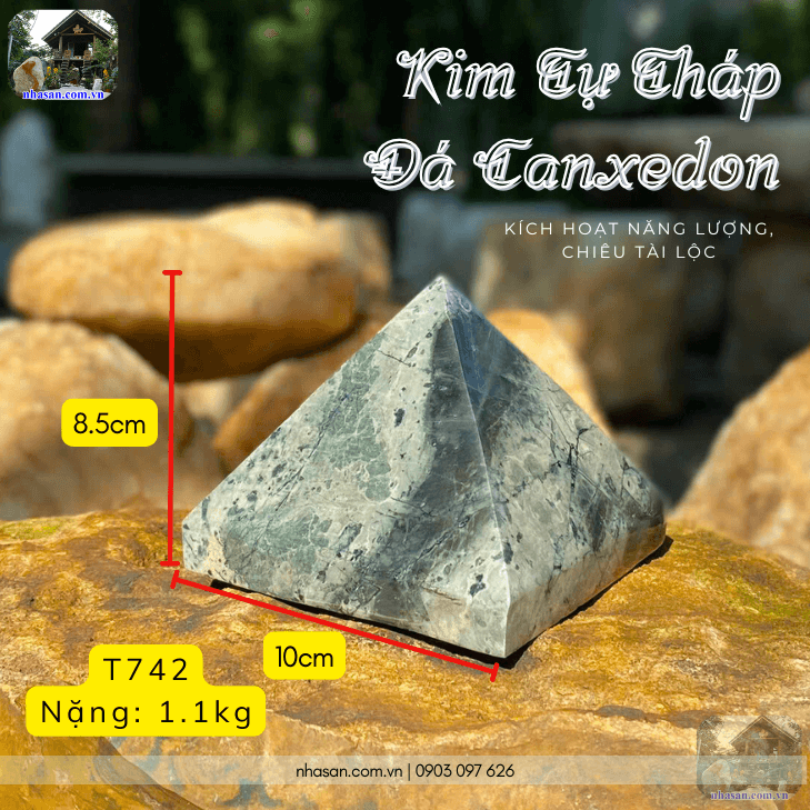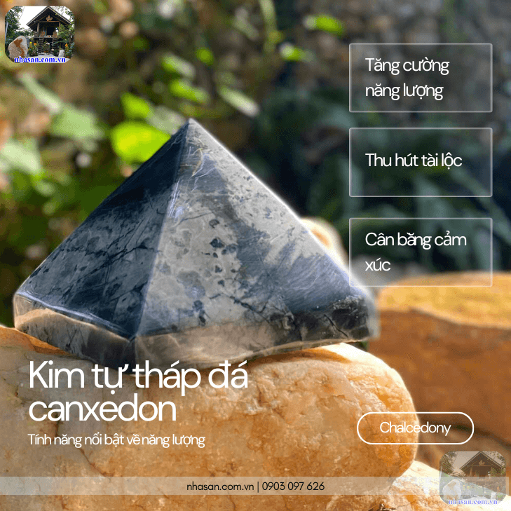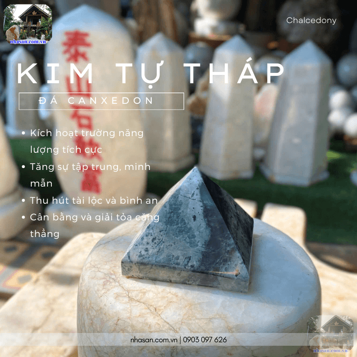 Hình dáng kim tự tháp là biểu tượng cổ xưa của sức mạnh bền vững, sự ổn định và con đường thăng tiến (hướng lên đỉnh cao). Khi được chế tác từ đá canxedon tự nhiên, hình dáng này tối ưu hóa khả năng thu và phát tán năng lượng, tạo ra một trường khí bảo vệ và kích hoạt mạnh mẽ trong không gian.