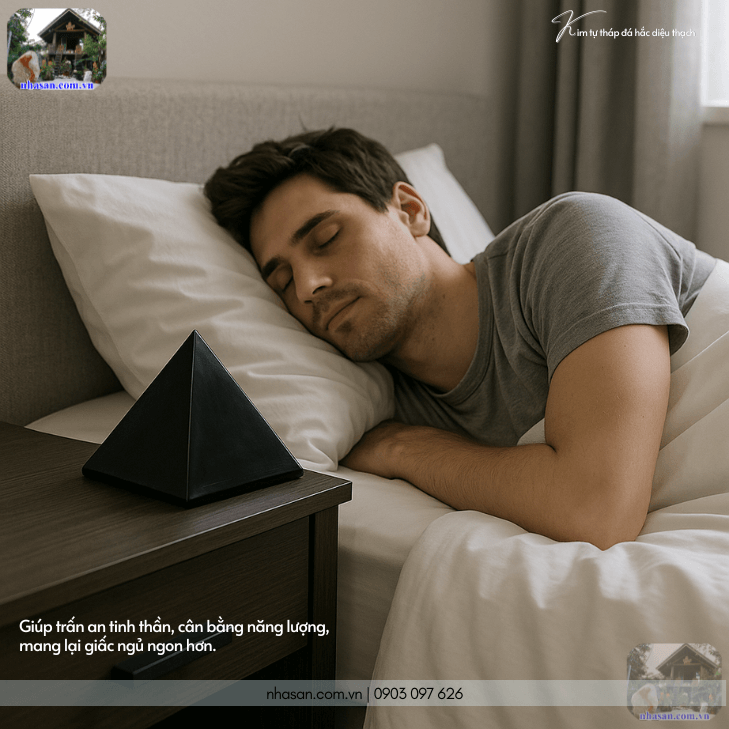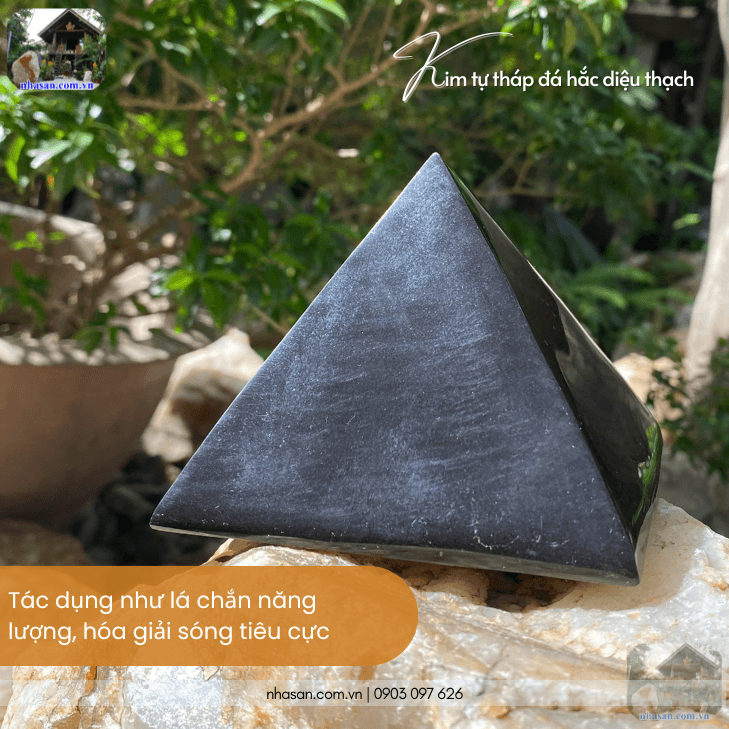 Hắc diệu thạch nổi tiếng với khả năng hấp thụ và hóa giải năng lượng tiêu cực, bao gồm cả bức xạ điện từ từ các thiết bị điện tử. Đặt kim tự tháp trong không gian giúp tạo ra một "lá chắn" bảo vệ, thanh lọc năng lượng xấu.