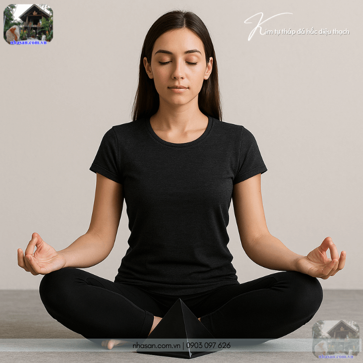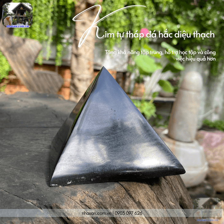 Kim tự tháp đá hắc diệu thạch hỗ trợ thiền định, cân bằng cảm xúc, giảm căng thẳng
