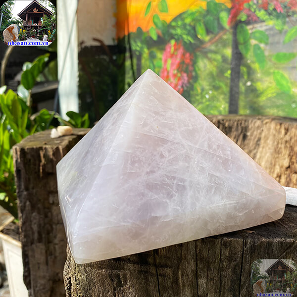 Màu hồng của thạch anh có tác dụng giúp tâm hồn thư thái, bình an. Khi đặt kim tự tháp thạch anh hồng trong nhà, sẽ giúp gia chủ giảm căng thẳng, stress, nâng cao chất lượng cuộc sống.