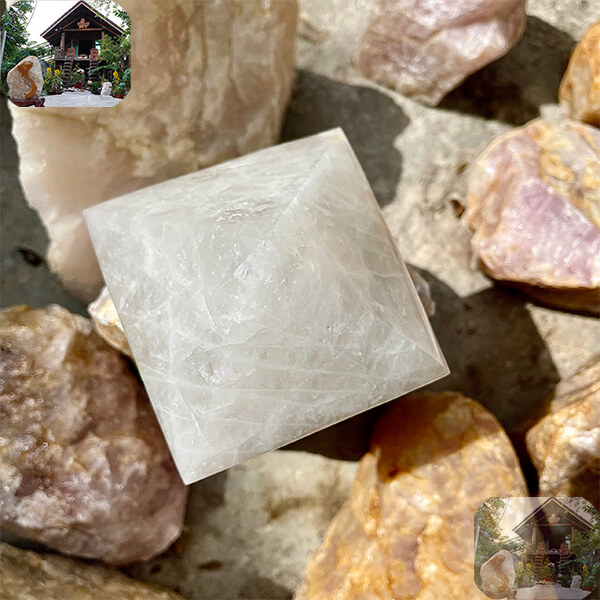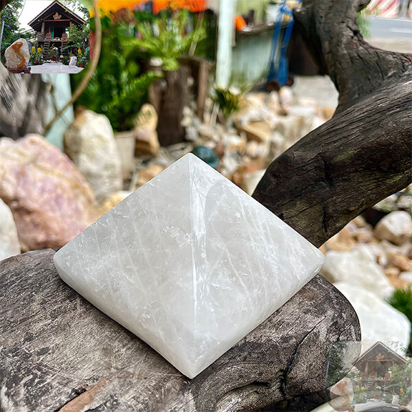 - Chất liệu: Kim tự tháp phong thủy thường được chế tác từ đá tự nhiên như thạch anh, mã não, gỗ hóa thạch, canxedon,... Các loại đá tự nhiên có khả năng tích tụ năng lượng tốt cho sức khỏe và tài lộc.