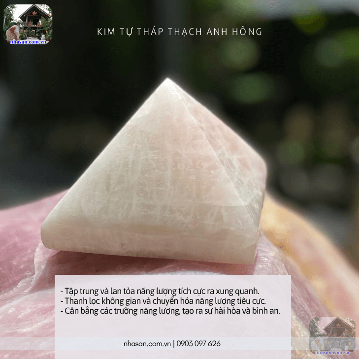 Với vẻ đẹp sang trọng và tinh tế, kim tự tháp thạch anh hồng không chỉ là vật phẩm phong thủy mà còn là một món đồ trang trí độc đáo, tạo điểm nhấn thu hút năng lượng tích cực cho phòng khách, bàn làm việc hoặc không gian thờ cúng.