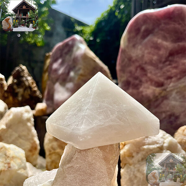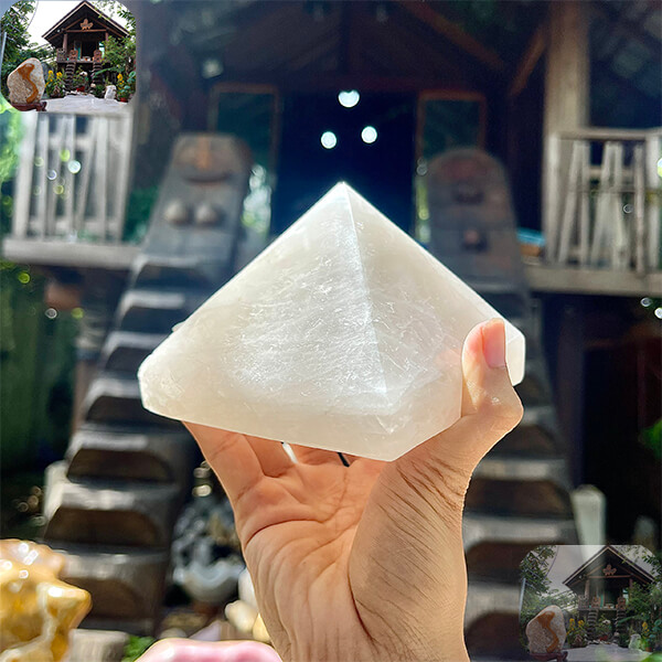 - Hóa giải các loại khí tiêu cực: Kim tự tháp thạch anh trắng có khả năng hấp thụ và chuyển hóa các loại khí tiêu cực thành năng lượng tích cực, giúp cho không gian sống và làm việc trở nên hài hòa, cân bằng.