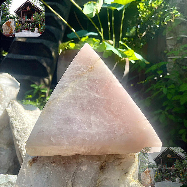 - Giúp thăng tiến: Kim tự tháp thạch anh hồng giúp gia tăng vận khí, mang lại may mắn trong công việc, giúp con người thăng tiến nhanh chóng.
