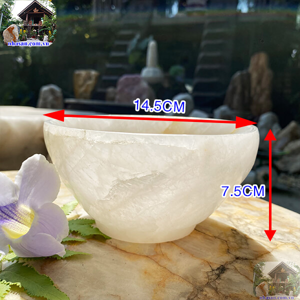 Chén bát đá thạch anh trắng tự nhiên phong thủy B42: