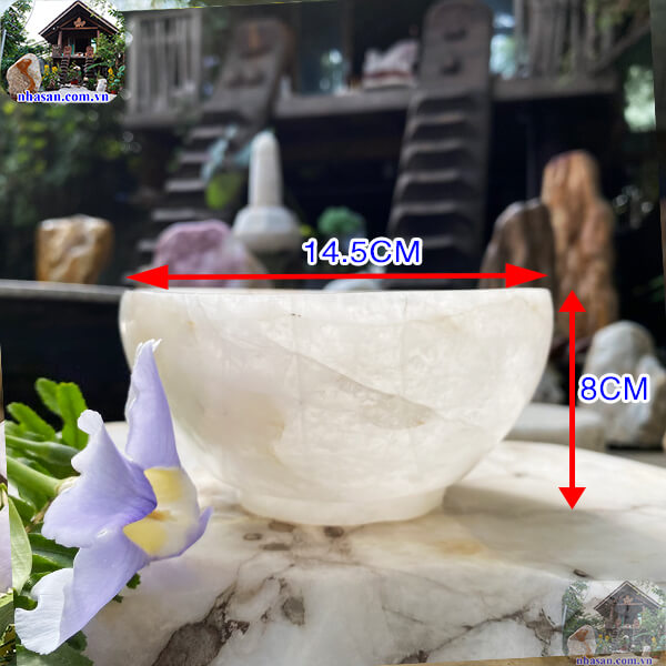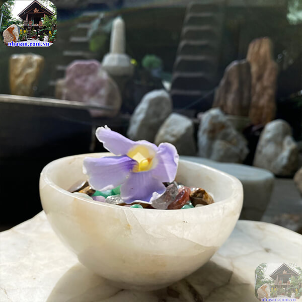 Chén bát đá thạch anh trắng tự nhiên phong thủy B29: