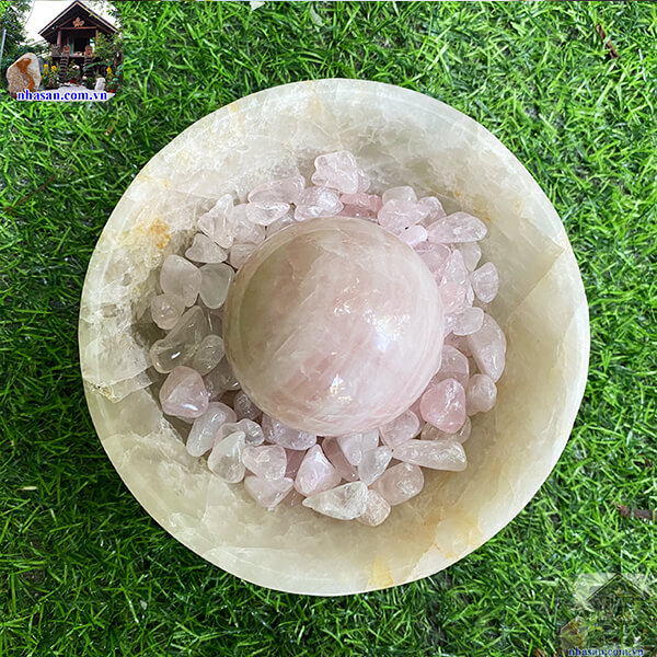 Bát đá thạch anh hồng kích hoạt tài lộc