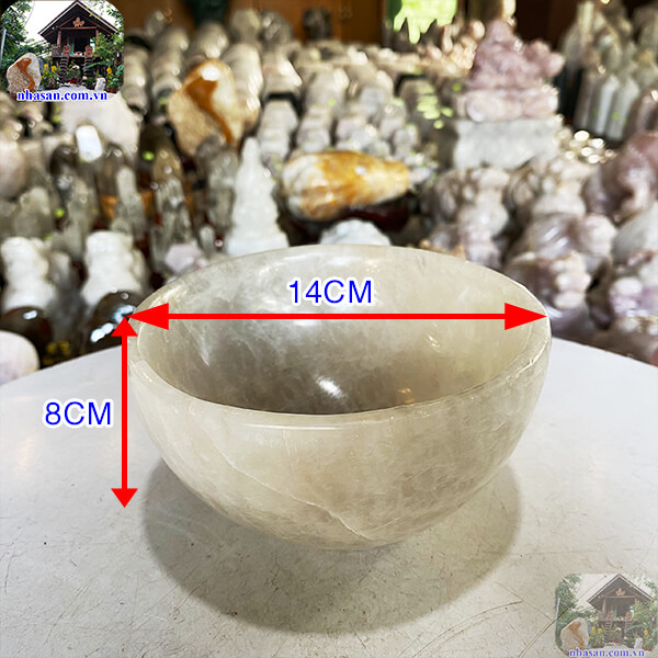 Chén bát đá thạch anh trắng tự nhiên phong thủy B15: