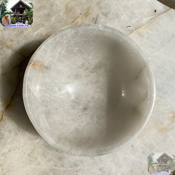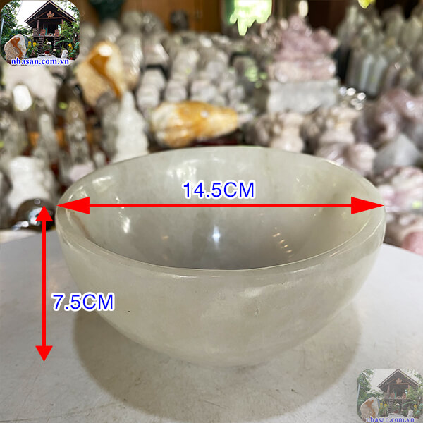 Chén bát đá thạch anh trắng tự nhiên phong thủy B26: