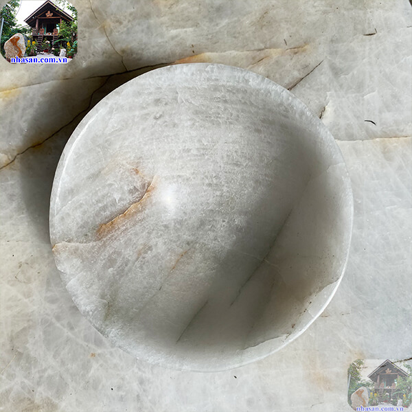 - Chén bát đá thạch anh trắng là một trong những sản phẩm phong thủy tinh xảo được các nghệ nhân Nhà Sàn chế tác làm ra. Với nhiều năm kinh nghiệm đã cho ra vật phẩm chén bát đá thạch anh vô cùng đẹp mắt với gam màu trắng trơn mượt và có lợi cho sức khỏe người dùng.