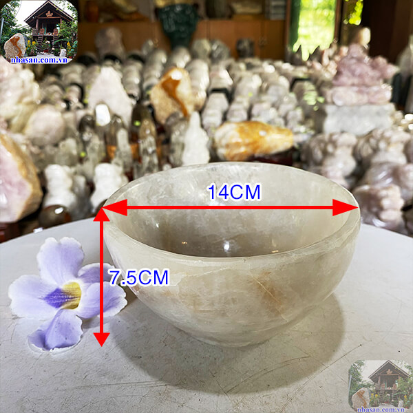 Chén bát đá thạch anh trắng tự nhiên phong thủy B13: