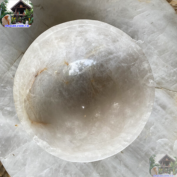 - Chén bát đá thạch anh trắng là một trong những sản phẩm phong thủy tinh xảo được các nghệ nhân Nhà Sàn chế tác làm ra. Với nhiều năm kinh nghiệm đã cho ra vật phẩm chén bát đá thạch anh vô cùng đẹp mắt với gam màu trắng trơn mượt và có lợi cho sức khỏe người dùng.