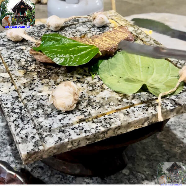 - Bước 4: Đặt thịt lên trên đá hoa cương đã được đun nóng và nướng thịt cho đến khi chín đều.