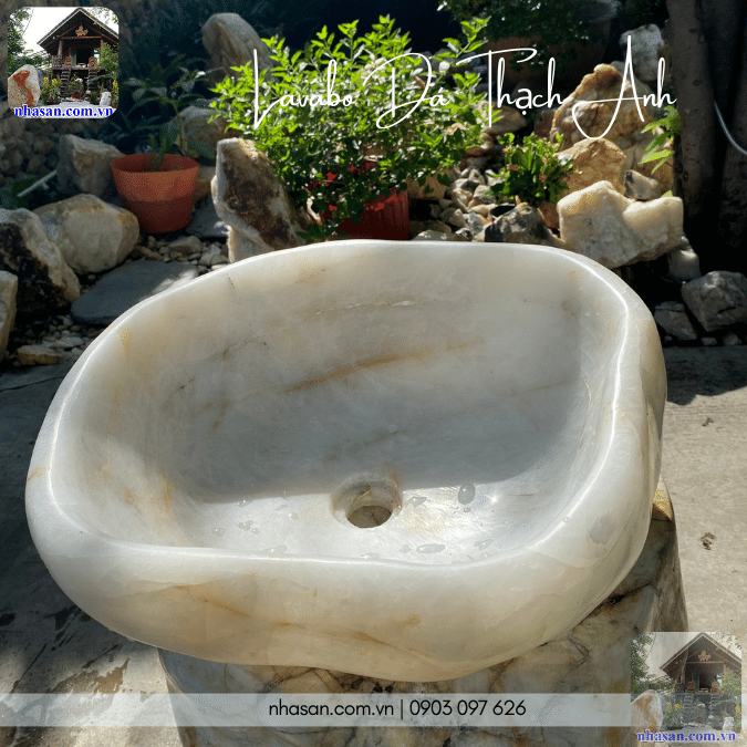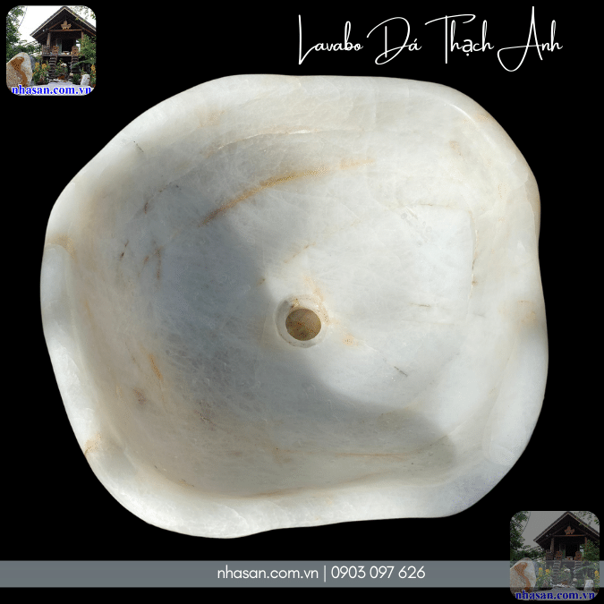 Được chế tác từ đá thạch anh tự nhiên nguyên khối, lavabo giữ nguyên vẹn hình dáng ban sơ của đá, mang đến nét độc đáo và ấn tượng cho phòng tắm. Những đường nét tự nhiên, những vết phèn, vết nứt ở trên sản phẩm chính là minh chứng cho nguồn gốc thiên nhiên, tạo nên sự khác biệt và độc đáo cho sản phẩm.