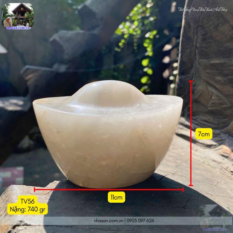 Thỏi vàng phong thủy thạch anh trắng TV56 là vật phẩm chiêu tài, kích lộc hoàn hảo cho ban thờ Thần Tài. Đá thạch anh tự nhiên giúp thanh tẩy năng lượng, mang lại may mắn, vượng khí và sự thịnh vượng.