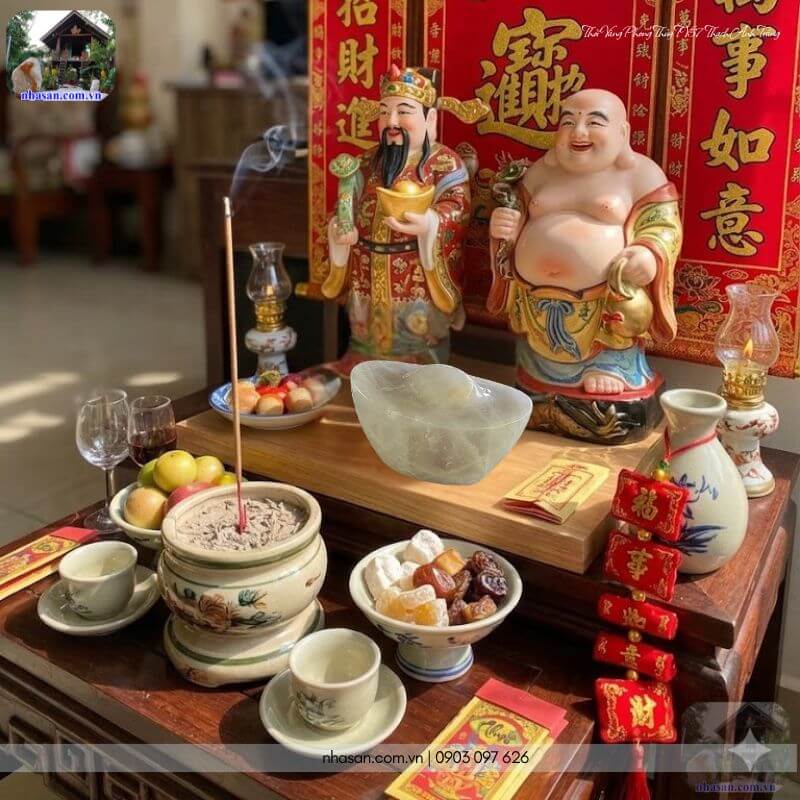 Đặt thỏi vàng phong thủy TV57 thạch anh trắng trên bàn thờ Thần Tài