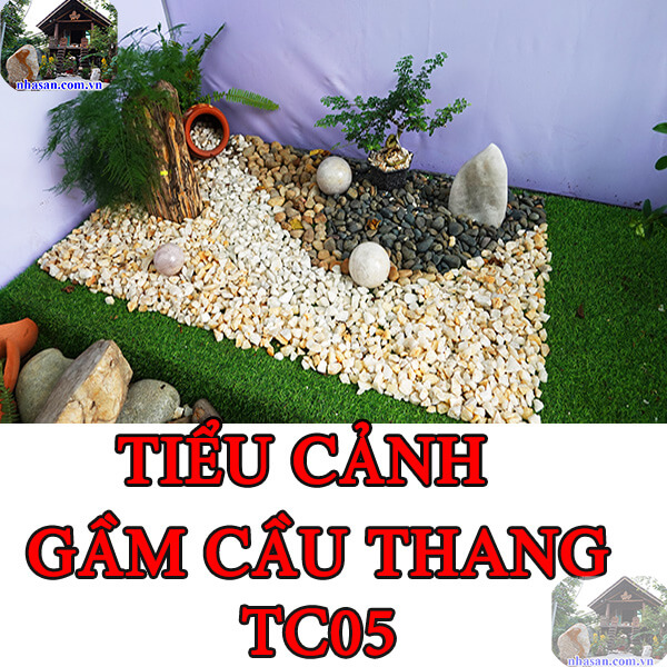 Đối với những góc cầu thang có khoảng trống không quá rộng rãi thì anh em Nhà Sàn sẽ thiết kế tiểu cảnh bằng những vật liệu sau đây: