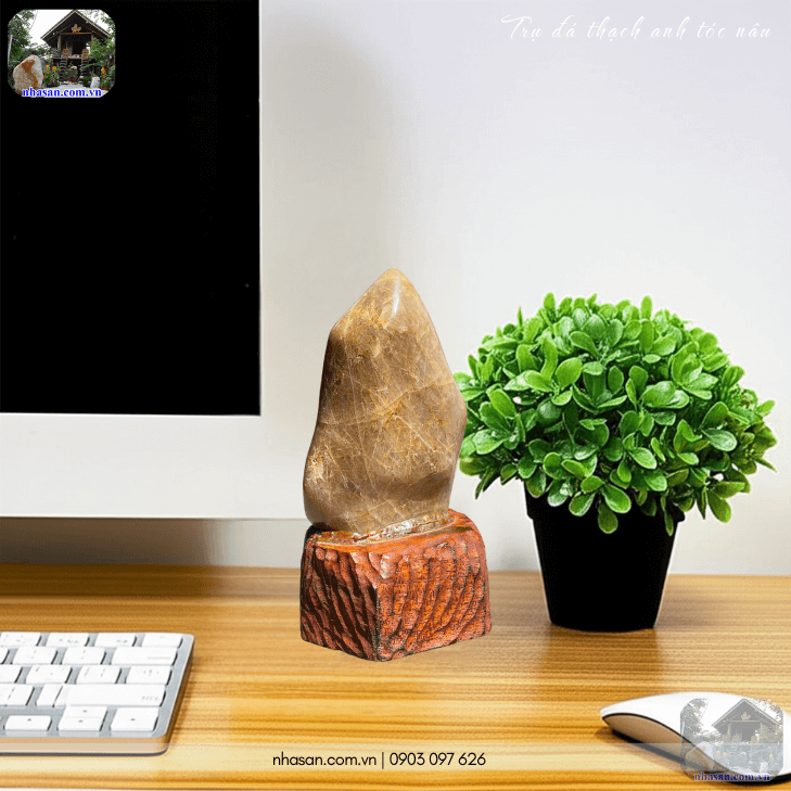 Đặt trụ đá thạch anh tóc nâu trên bàn làm việc