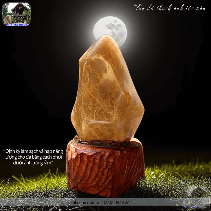 Nạp năng lượng cho đá thạch anh tóc nâu bằng ánh trăng rằm