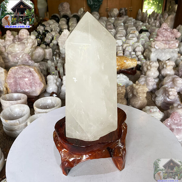 - Đặt trụ tinh thể thạch anh trắng ở gần giường hoặc bàn đầu giường để giúp giảm căng thẳng, cải thiện giấc ngủ và tăng cường năng lượng.