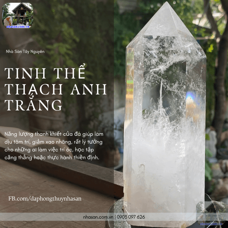 Đừng bỏ lỡ cơ hội sở hữu trụ tinh thể thạch anh trắng nguyên khối độc đáo từ Nhà Sàn Tây Nguyên - vật phẩm không chỉ tô điểm cho không gian mà còn là chìa khóa mở ra cánh cửa vượng khí, bình an và thịnh vượng.