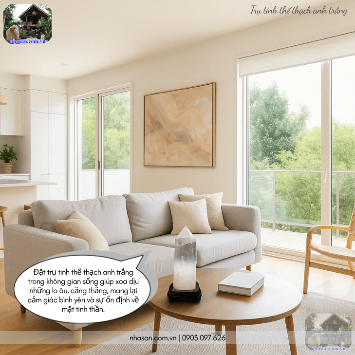 Đặt trụ tinh thể thạch anh trắng trong không gian sống giúp xoa dịu những lo âu, căng thẳng