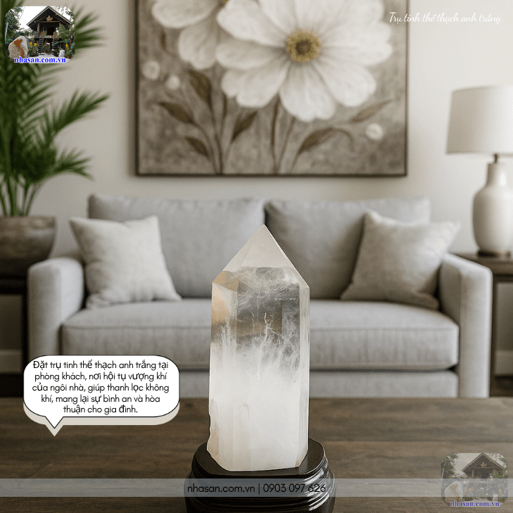 Đặt trụ tinh thể thạch anh trắng trong phòng khách