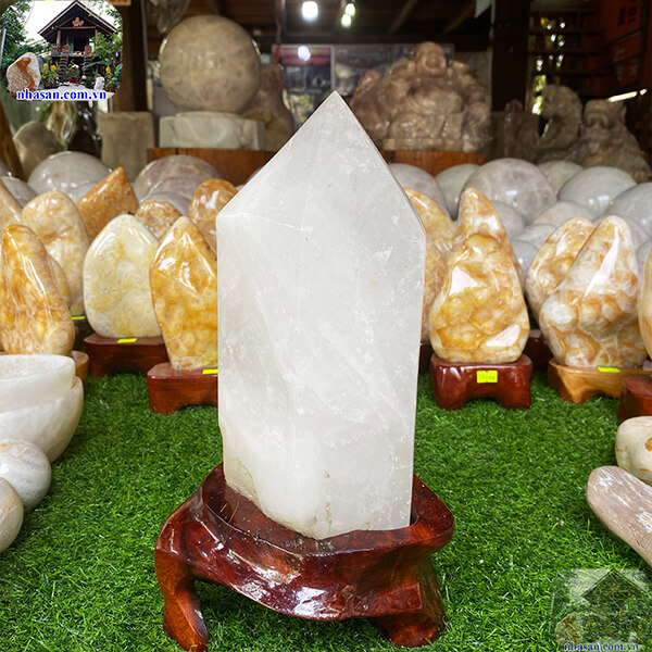 - Tinh thể đá thạch anh trắng tự nhiên thường được sử dụng để trang trí và bố trí theo phong thủy để mang lại sự cân bằng và thu hút năng lượng tích cực.