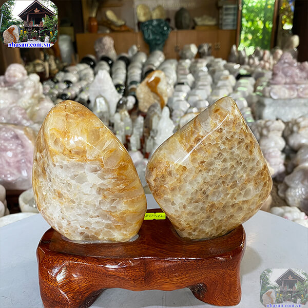 Cặp đá thạch anh bông vàng tự nhiên tuyệt đẹp