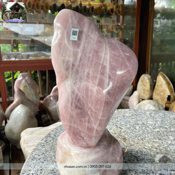 Trụ đá thạch anh hồng tự nhiên nguyên khối phong thủy trấn trạch - trừ tà T525: