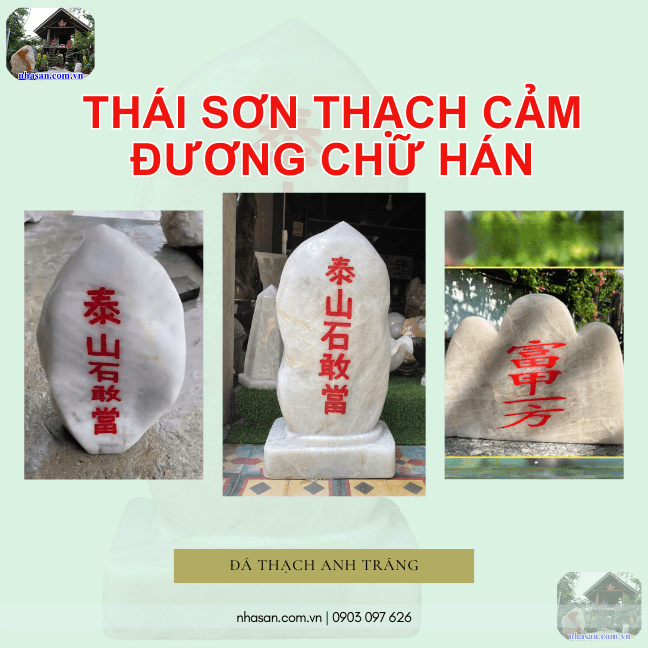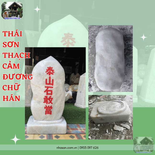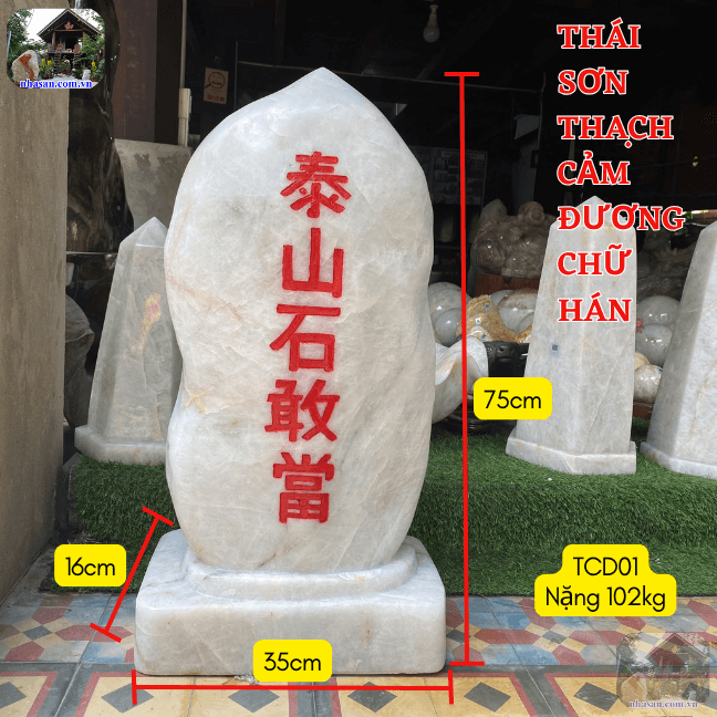Thái sơn thạch cảm đương chữ hán nặng 102kg, trụ cao 75cm, đế dài 35cm, đế rộng 16cm - TCD01