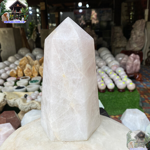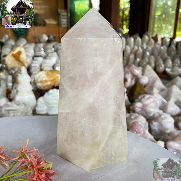 Trụ lục giác đá thạch anh hồng giúp tăng cường năng lượng và cân bằng tinh thần.