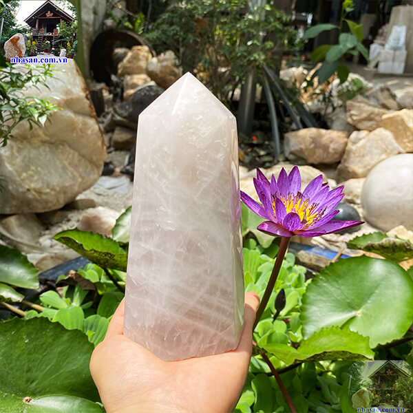 Trụ lục giác đá thạch anh hồng giúp tăng cường năng lượng và cân bằng tinh thần.