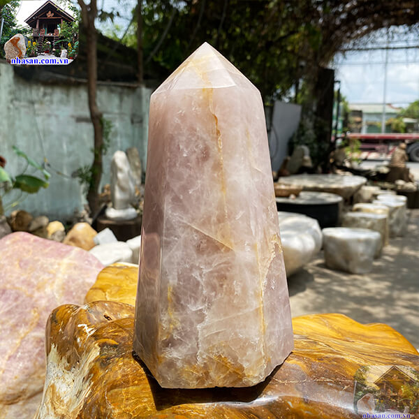 Trụ lục giác đá thạch anh hồng giúp tăng cường năng lượng và cân bằng tinh thần.
