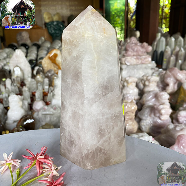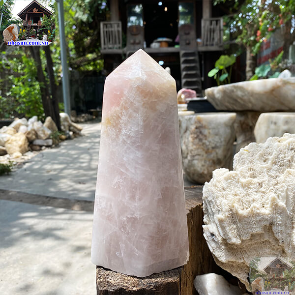 Trụ lục giác đá thạch anh hồng giúp tăng cường năng lượng và cân bằng tinh thần.